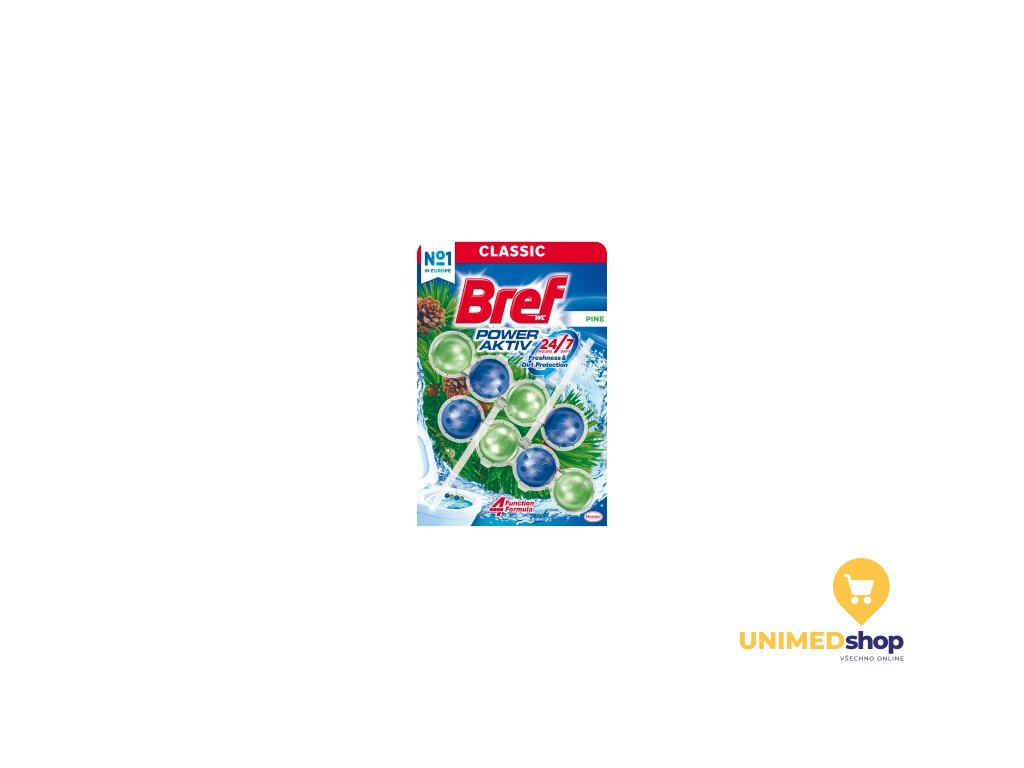 Bref Power Aktiv Pine je tuhý WC blok s osvěžující vůní borovice, který účinně čistí toaletu při každém spláchnutí. Díky technologii 4 účinných kuliček poskytuje komplexní péči – odstraňuje nečistoty, brání tvorbě vodního kamene, vytváří čisticí pěnu a zanechává příjemnou svěžest.