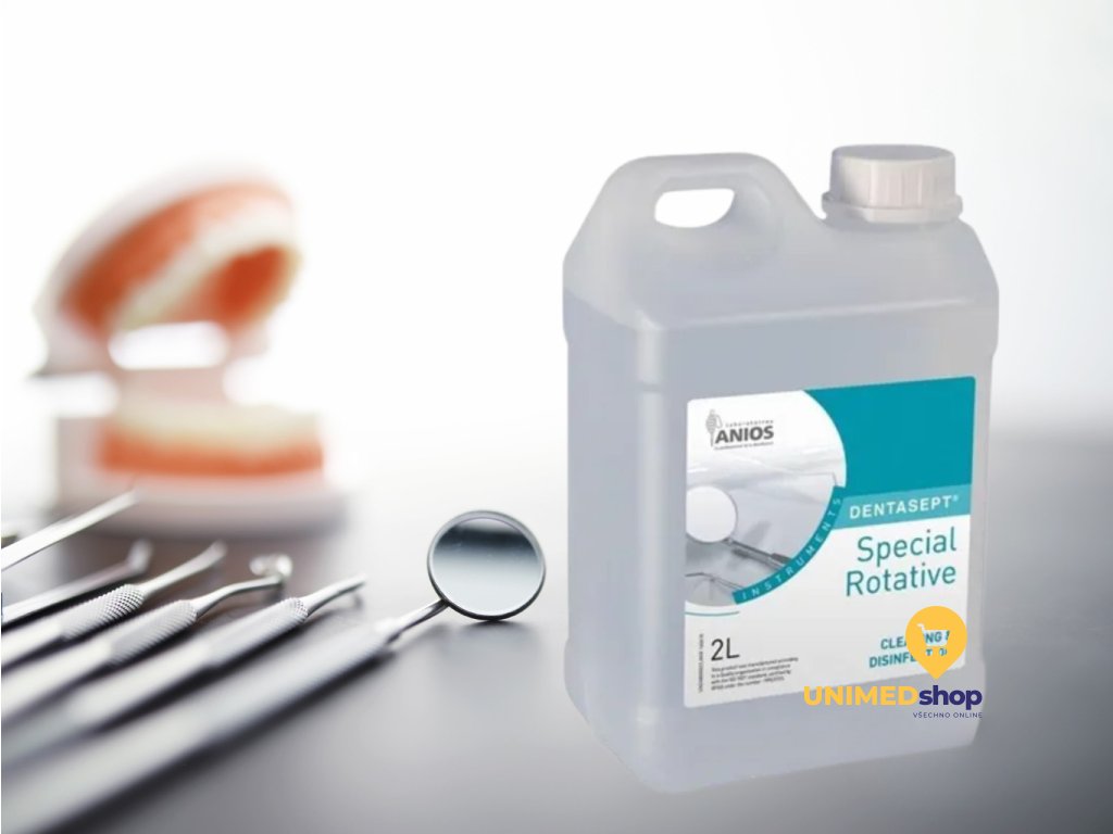 Dentasept Special Rotative 2l je dezinfekční a čisticí prostředek, určený pro rotační stomatologické nástroje, jako jsou vrtáčky, brousky a kanálkové nástroje. Tento přípravek je navržen pro použití před sterilizací a je kompatibilní s širokou škálou materiálů, včetně niklu, titanu, karbidu wolframu a hliníku. Je vhodný také pro použití v ultrazvukových čističkách.