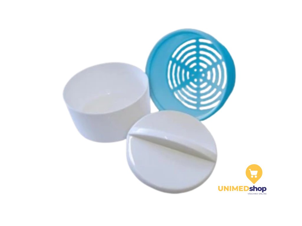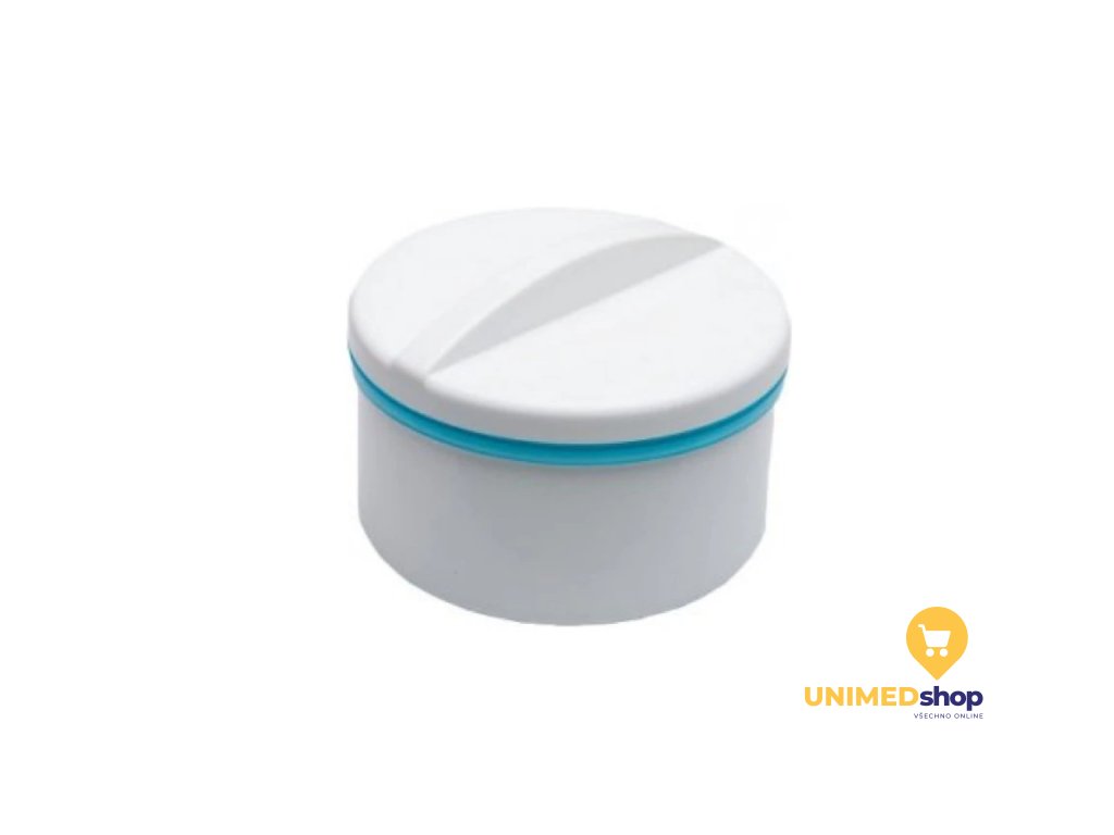 Praktická dentální dóza v bílé barvě určená pro hygienické a bezpečné uložení zubních protéz, chráničů, rovnátek či dalších dentálních pomůcek. Lehká, omyvatelná a vhodná pro každodenní použití.