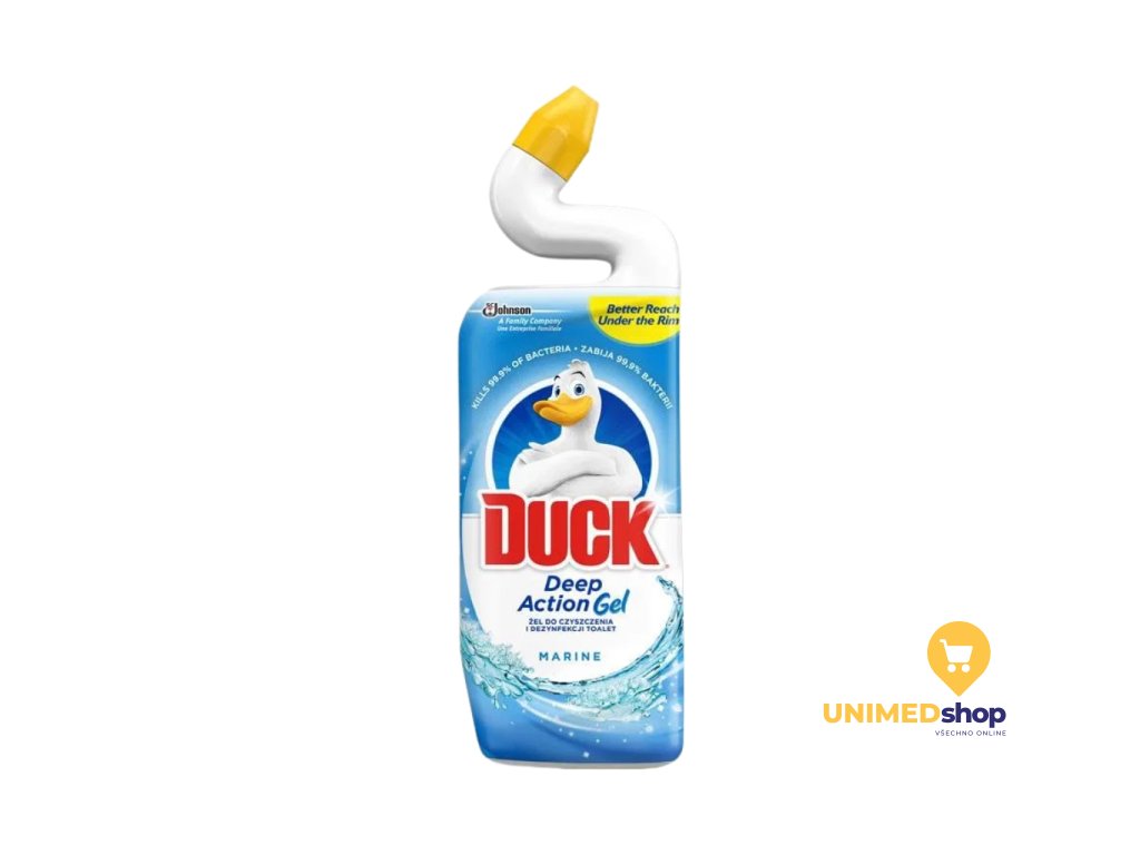 Duck WC čistič 750 ml Mořská je profesionální tekutý čisticí prostředek na toalety, který účinně odstraňuje nečistoty, bakterie a zápach. Silný účinek proti vodnímu kameni a usazeninám udržuje toaletu hygienicky čistou a bezpečnou. Příjemná mořská vůně zanechává pocit svěžesti po každém použití.