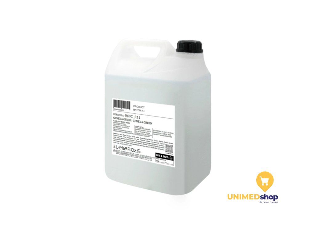 Geneva Guild vlasový a tělový šampon 5 l je jemný, univerzální mycí přípravek určený pro každodenní hygienu celého těla i vlasů. Šetrná formule účinně čistí od hlavy až k patě a zanechává pokožku i vlasy svěží, čisté a příjemně provoněné.