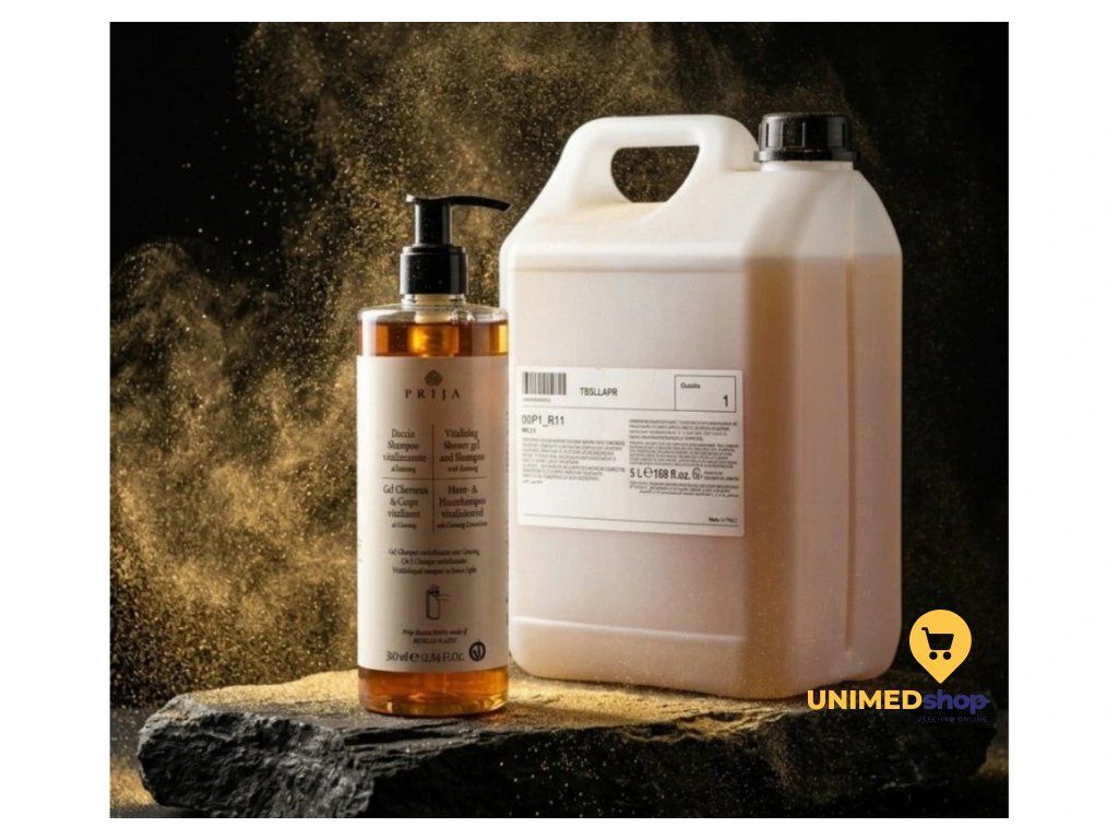 Prija vlasový a tělový šampon 5 l je jemný, ale účinný revitalizační gel určený pro každodenní mytí pokožky i vlasů. Obsahuje výtažky ženšenu, který je po staletí ceněn pro své energizující, osvěžující a revitalizační účinky. Pokožku i vlasovou pokožku jemně čistí, podporuje její vitalitu a zanechává příjemný pocit svěžesti.