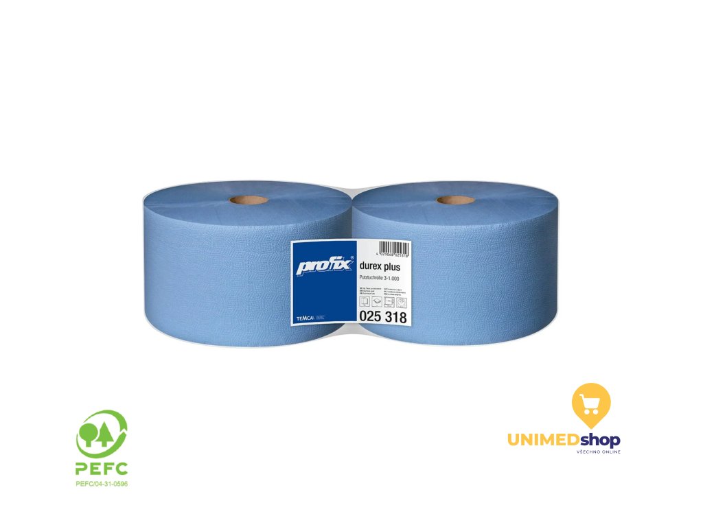 Profix durex plus 3-vrstvá modrá utěrka, 22 x 36 cm, 1000 útržků, 2 role