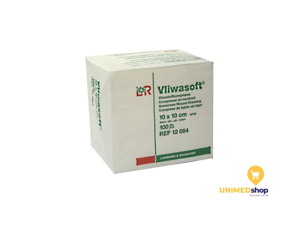VLIWASOFT®komprese z netkané textilie nesterilní, 10 cm x 10 cm, 4-vrstvá, 100ks