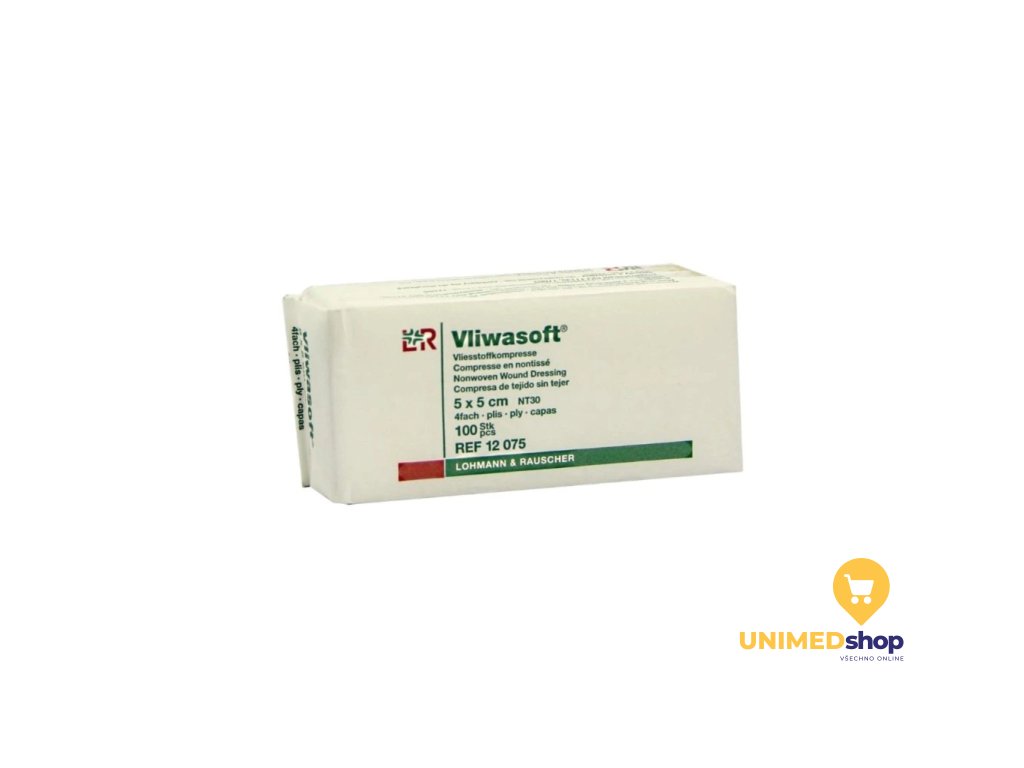 VLIWASOFT®komprese z netkané textilie nesterilní, 5cm x 5cm, 4-vrstvá, 100ks
